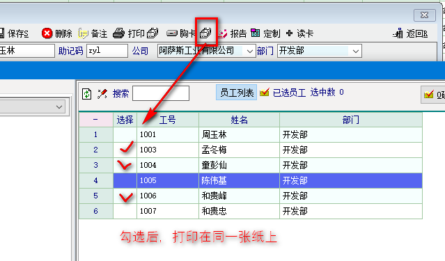 1、可否勾选多个员工,将胸卡打印在一张纸上,方便剪裁及减少纸张浪费和提高操作效率?