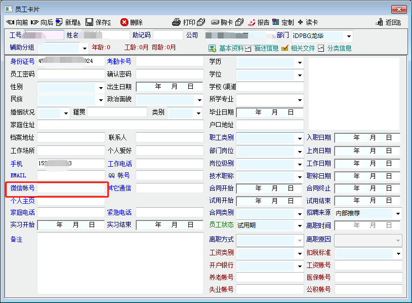 现在员工卡片里面已经有 微信这一资料栏、但招聘人员卡片里面却没有,