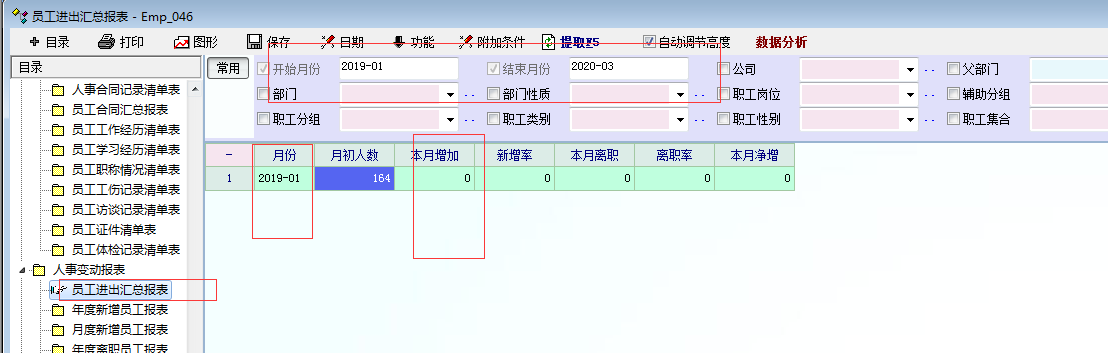 但是员工进出汇总报表中本月增加双击进去的内容是包含新增和离职的人员,查询时还要人员筛选的话,就没意义了