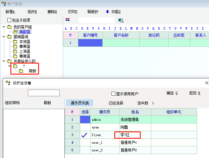 8、客戶管理中 共享給其它用戶 顯示亂碼