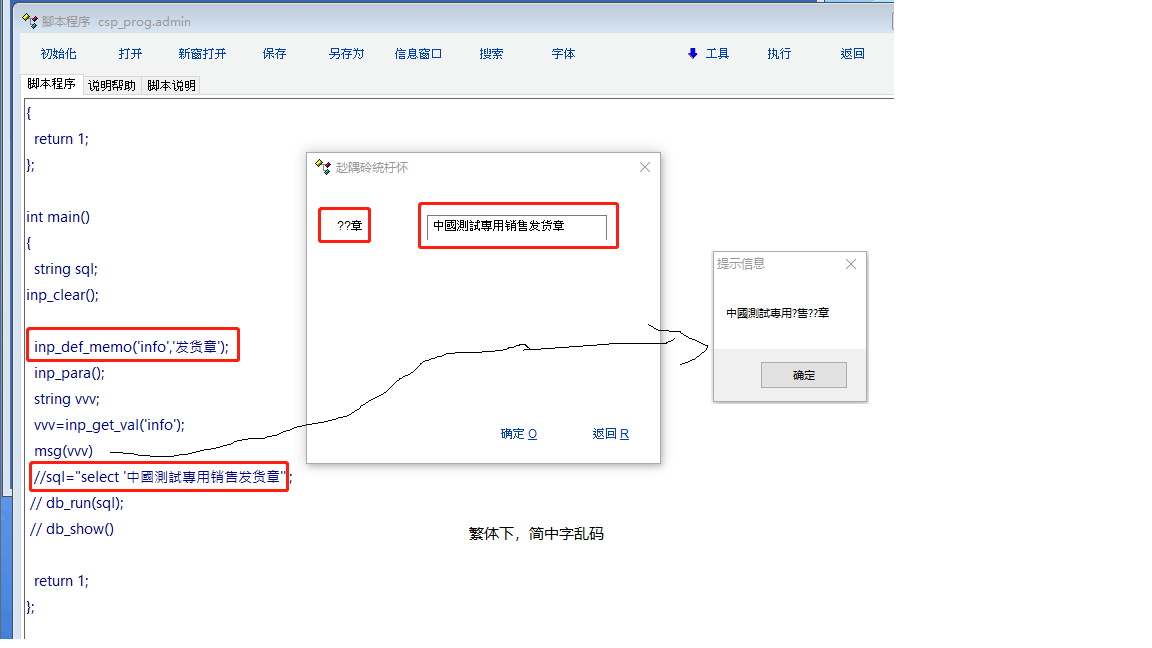 脚本保存,没有乱码,但遇到繁体环境下,有简中字的时候,执行就乱码了