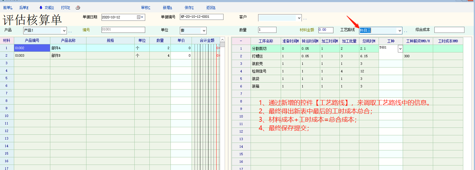 在实际使用过程中,我想通过工艺路线功能来定义工艺流程,确定整个工艺流程中的每个工序以及各工序对应的料件数和所花费的时间,同时我还会利用工艺流程来核算我的整个加工成本。