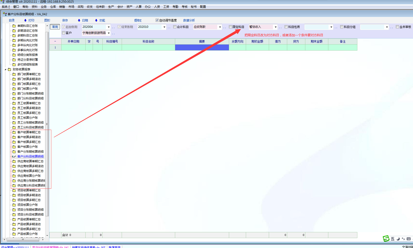 求助_在财务核算报表下的客户核算与供应商核算查询条件里把限定科目改为对方科目或者另添加_产供销
