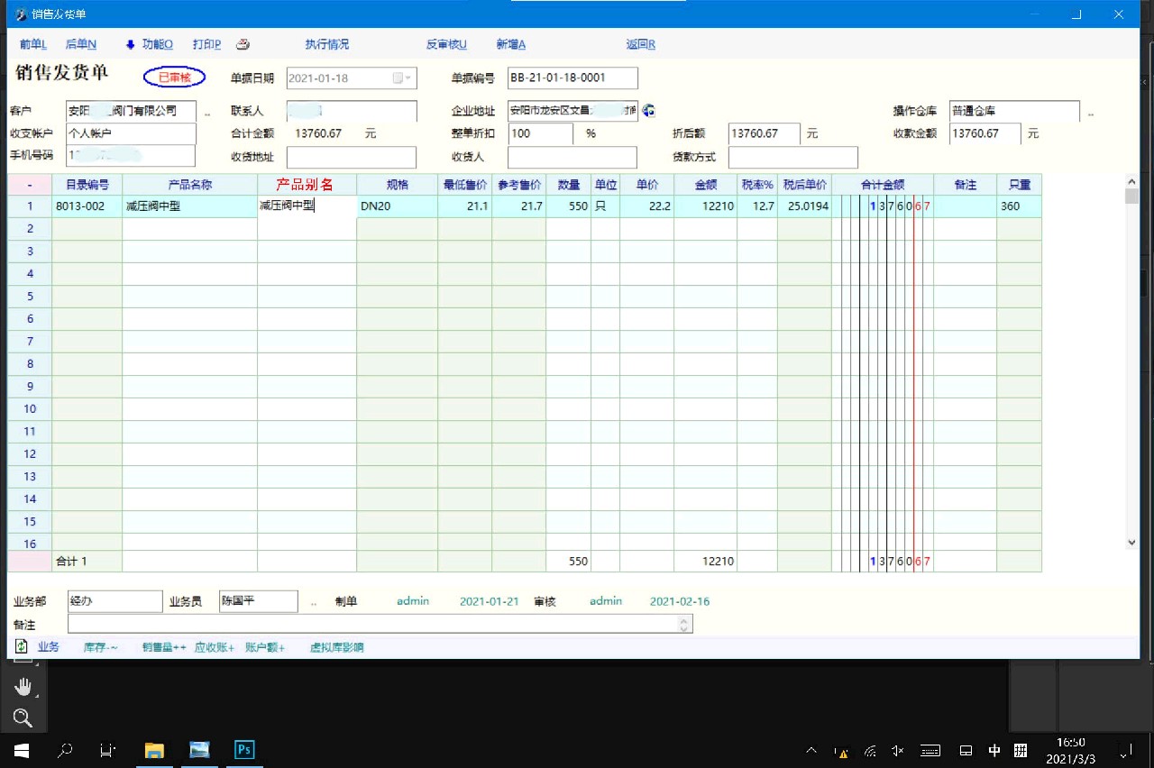目前产品名称在每张销售单、报价单等处是不能修改名称的。产品资料中才可修改。 功能场景描述,以本人某次业务举例:真空阀又名破坏阀、吸气阀、负气阀。我和客户都明白具体产品长啥样。但是客户的客户即工地是不知道的,所以如果以 产品编码不同企业对照。每个工地都不同建立起对照就太麻烦了。 设想功能是这样:选定“减压阀中型”后,别名自动复制引用“减压阀中型”,然后可以按需求修改为“减压阀”或“铜减压阀”或“丝扣黄铜减压阀”,这些字眼不同绝非无意义,操作单据员能快速修改。而不是每次从产品资料里先修改名称保存刷新,或建立对照重新开单。只需开单后,打印模板列表选别名不选名称即可满足场景需求。 |
