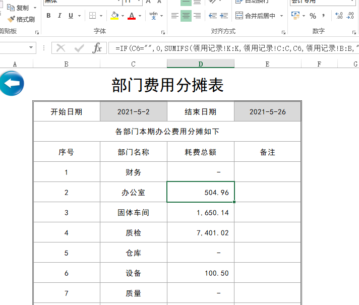 物品管理“报表”多设置一个 部门费用分摊表 见图