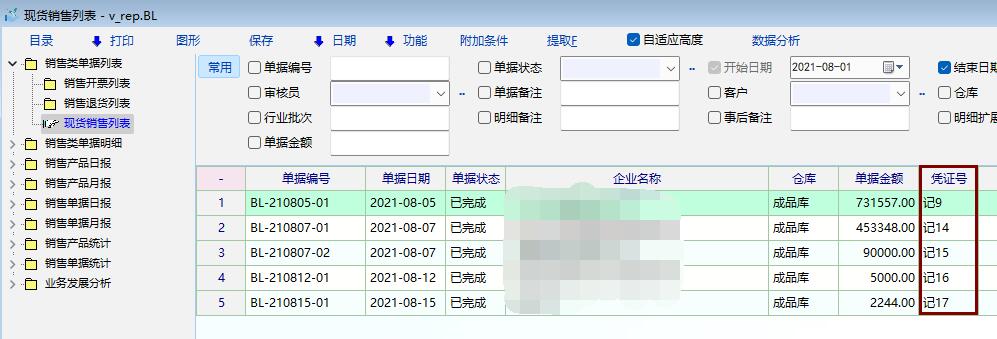 如果设置了引入凭证模板,由单据生成凭证后,尽管可以通过单据查询对应的凭证,但是必须在单据打开状态下才可以,并且不能批量查询,因此以进销存单据为例,在单据列表中启用“扩展一”,改名为“凭证号”,结合如下脚本,就可以在单据列表界面查询对应的凭证号了。 int load_over() { int i,n; string a,b,c,sql; n=grid_row_num("MG"); for(i=1;i<n;i++) { a=grid_get_v("MG","voucher_id",i); sql="select * from evm_imp_lst where org_voucher_id ="+a+""; db_run(sql); b=db_res(1); if(b!="") sql="select * from evm_v where voucher_id="+b+""; db_run(sql); c=db_res(3); sql = "update ebs_v set ext_1 = '记"+ c+"' where voucher_id = " +a; db_run(sql); db_run("commit"); } return 1; }; 脚本不太熟悉,可能比较粗糙,勉强能达到效果,运行起来速度有点慢,哪位朋友有兴趣可以再优化一下。 |
