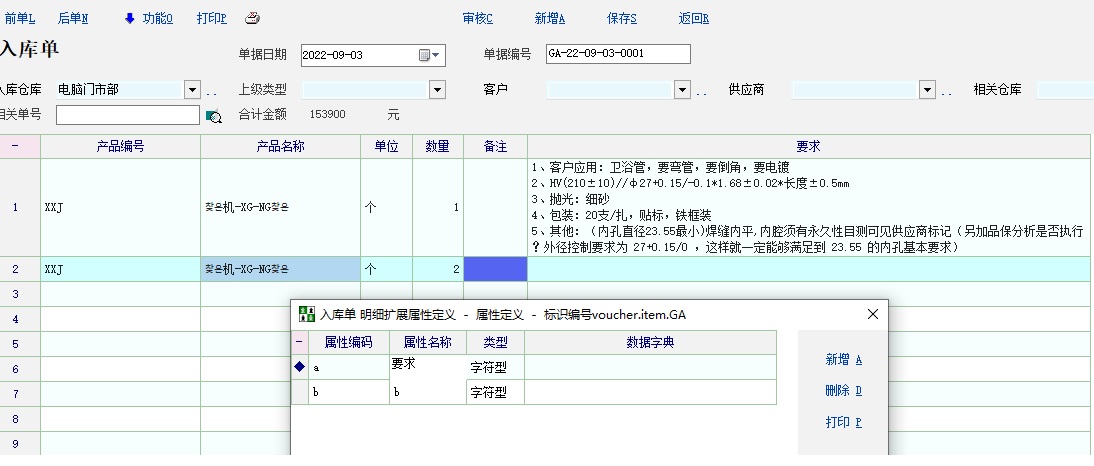 单据明细附加属性,下个版本就支持500个汉字了。