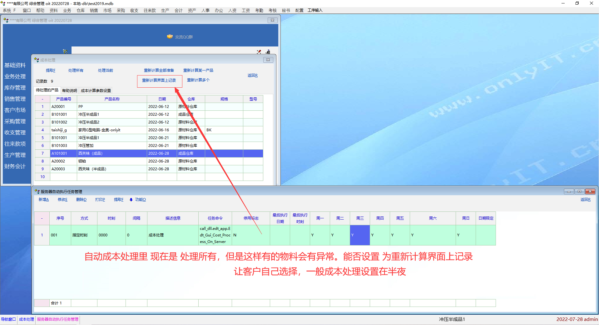 默认现在后台服务-成本处理-只是处理所有,但是这样有的物料会有成本异常。这样财务成本老有问题,能不能在后台服务 成本处理里 可以选择设置重新处理界面?