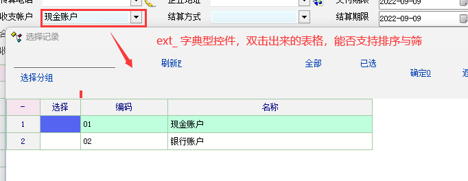 求助_ext_xx 类型,双击后出来的表格,可否支持排序与筛选_产供销