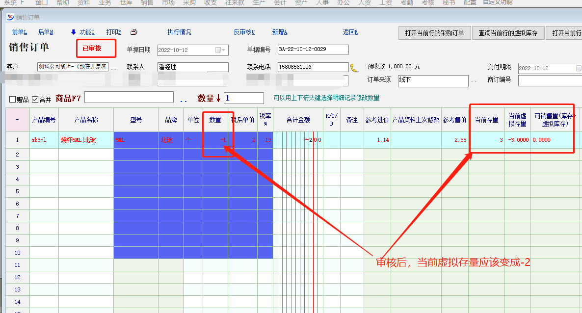 原创_优化完善:订单数量为负数时,审核后,虚拟存量不会参与计算。_产供销