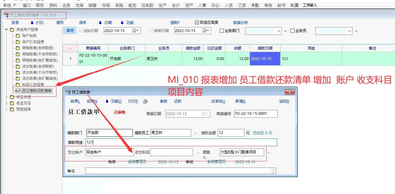 讨论_员工借款还款清单报表 增加 账户 收支科目 项目列_产供销