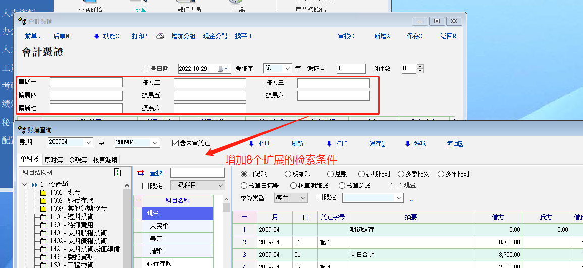 1、增加8个扩展的检索条件