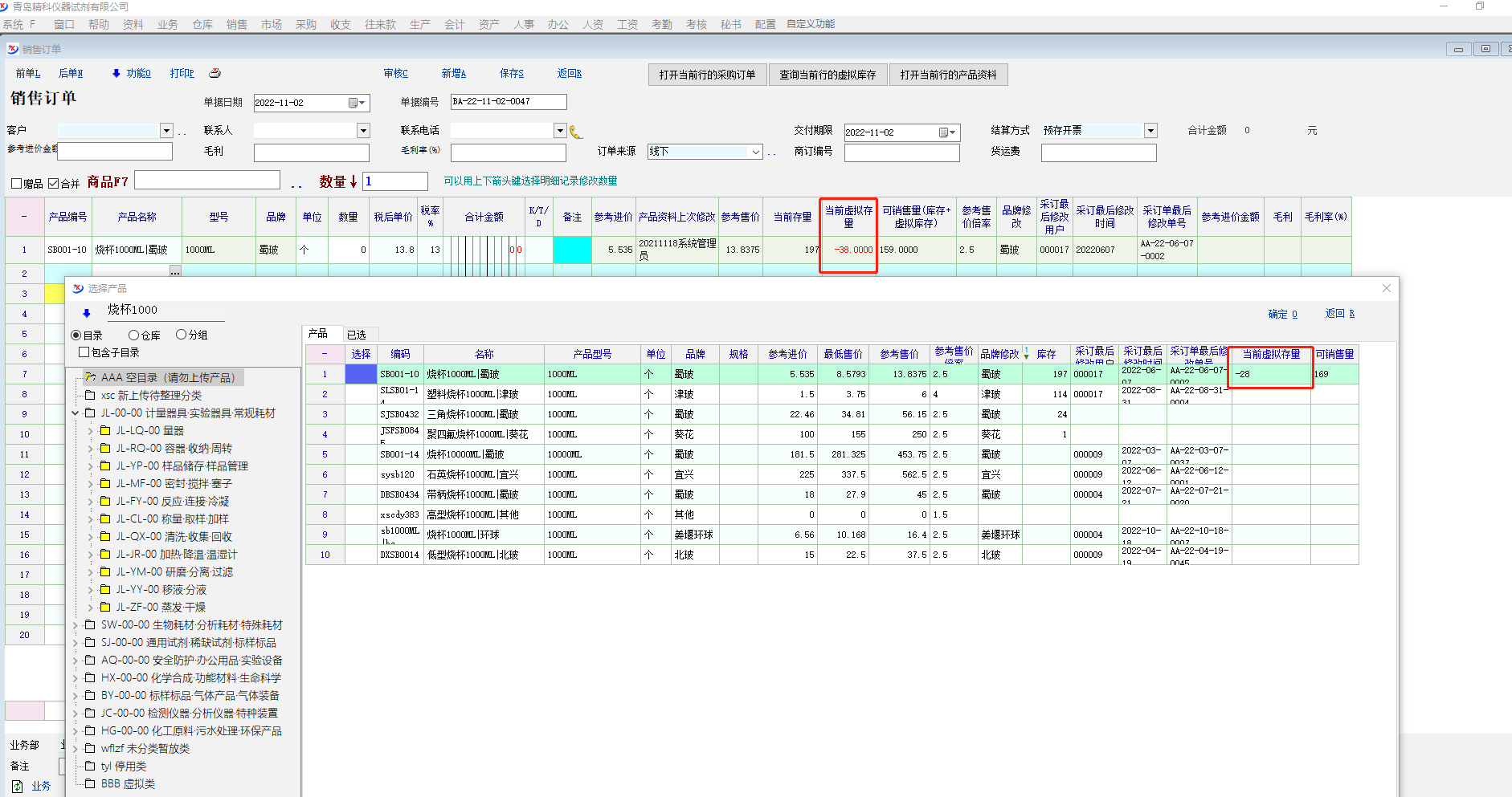 求助_制作销售订单和采购订单数量为负数时,虚拟存量显示不一致的问题。_产供销