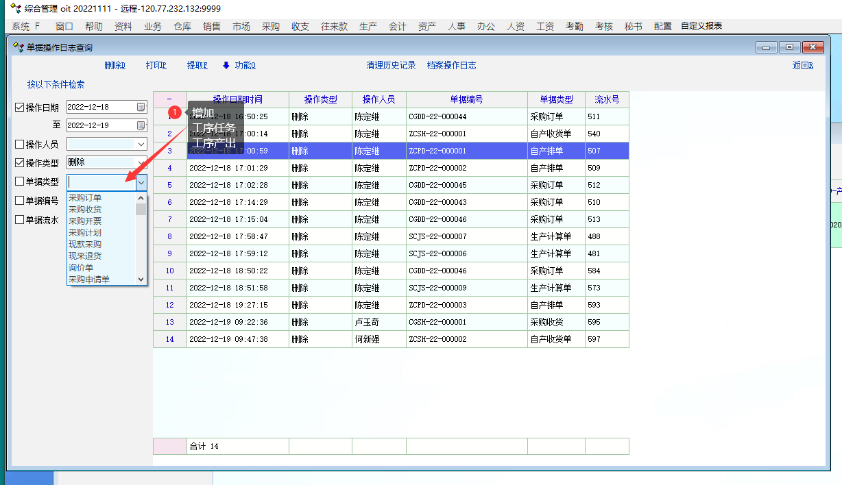 现在有操作人员打印出生产任务单, 又将它删除了, 查不到操作记录...