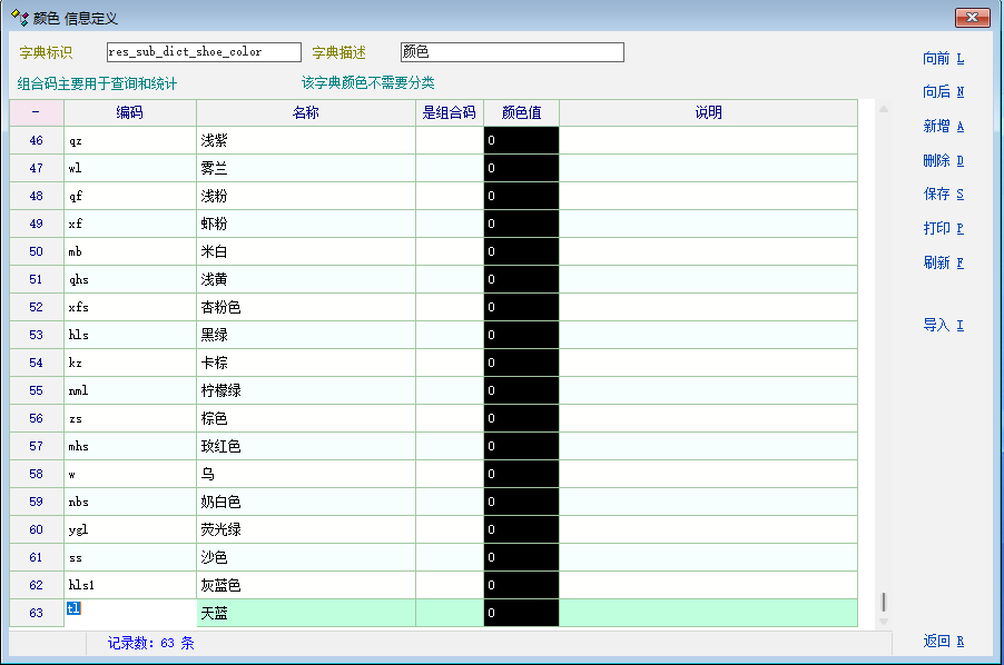 我的行业颜色比较多,编码都是按颜色的中文拼音定义,比如灰色,编码hs, D  黑色的同样编码也是hs....能不能可以编码重复,颜色栏输入的时候重复的出现下拉选择,这样方便输入