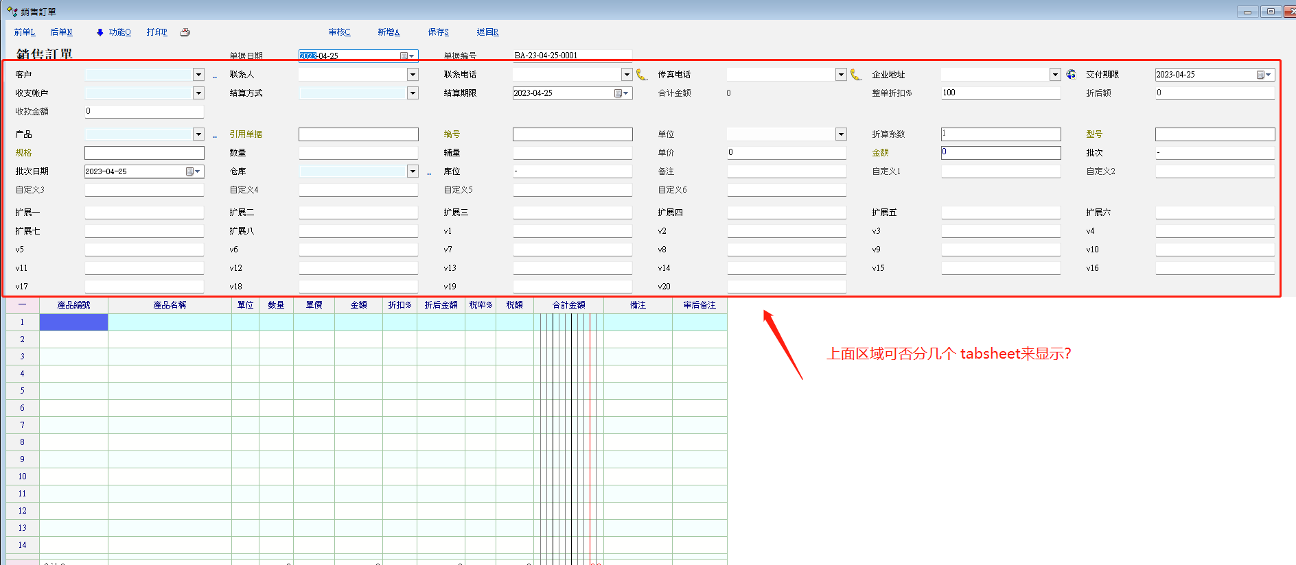 如果能够将上部的 分几个tabsheet显示,则能够更好的显示下面表格的数据。