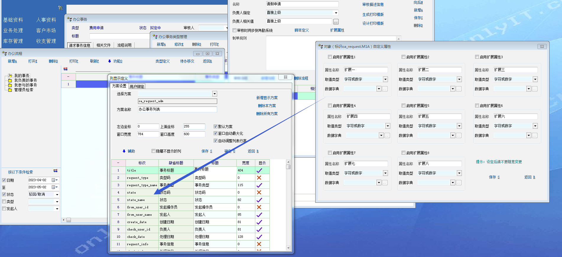 1、在办公流程列显示定义添加自定义扩展属性