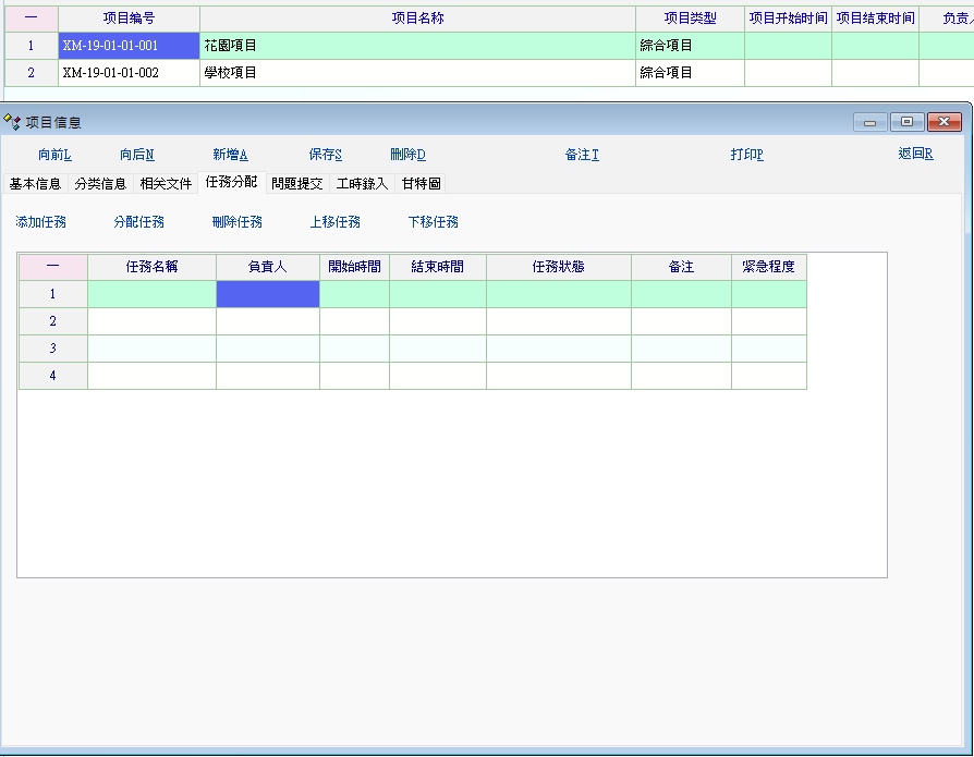 3、任务名称、计划完成与实际完成,分配任务后(可与日历提醒相关联),相应负责人对任务进行提交工时(相应任务的负责人只能提交自己的任务,不能修改别人的任务),问题反馈与回复