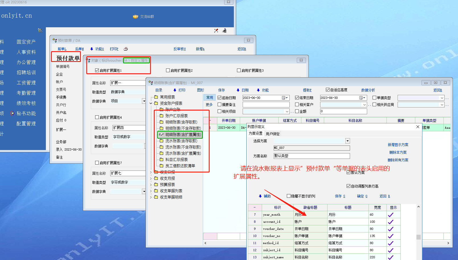 推荐_请在流水账明细报表中显示预付款单等单据表头的扩展属性_产供销