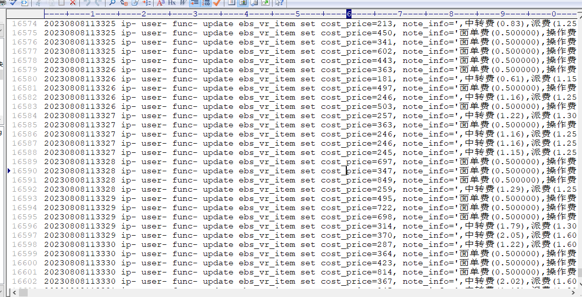 日志文件中, 都是 db_run 的语句了。。。 截图是update的, insert的那个昨天晚上删除了。 几天必须删除一次。 要不每天500-1G的容量。 服务器没那么多硬盘容量了。 |