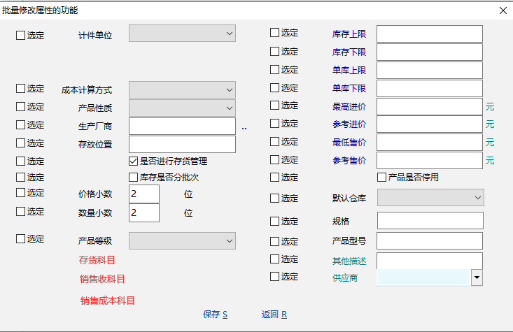 能否在产品资料右键批量修改中增加“存货科目代码”、“销售收科目代码”和“销售成本科目”代码三个选项?
