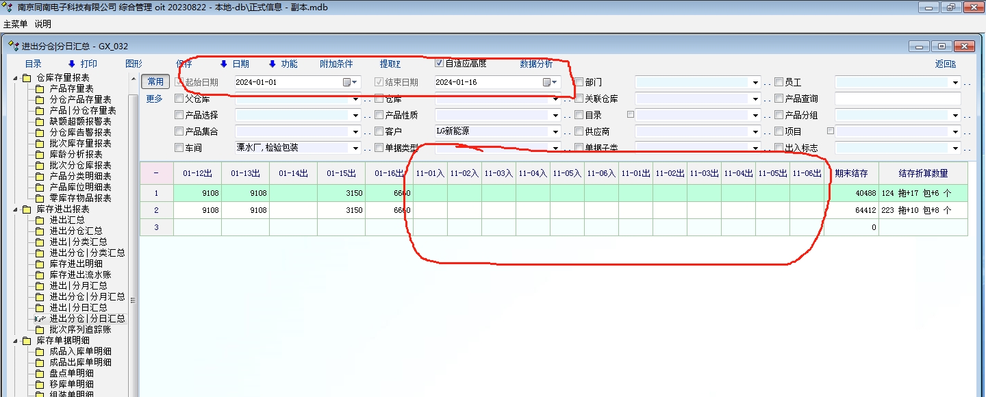 但是随便点左边任意报表后,再点回原报表,显示就会多出一些不在查询范围内的日期。如图2