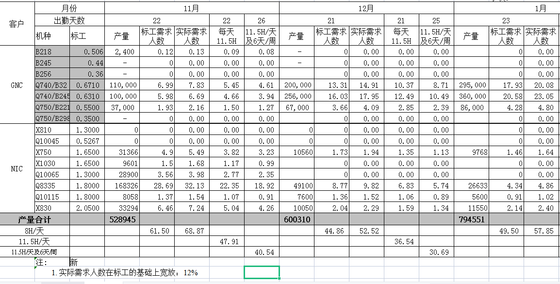 3、要员分析----用于计算完成客户订单----按照客户订单交货期,每日需要生产多少产品来计算产线实际需要多少员工。