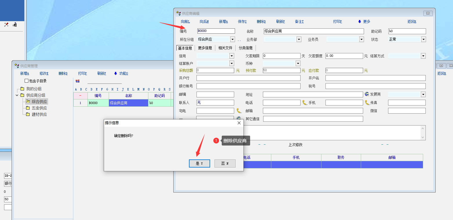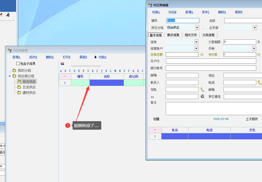 操作场景: 今天 有个客户, 做了付款单, 然后又直接删除了供应商. 我用演示数据库重现了一下过程 供应商还没有发生业务单据, 填制了往来付款单中的付款单. 然后供应商中本来是要删除文件的, 点击到了卡片的删除按钮, 居然把供应商删除掉了. 所以建议: 供应商删除时, 检测是否有往来单据, 有往来单据也不能删除. 否则很容易造成以前的单据中供应商显示不正常了. |