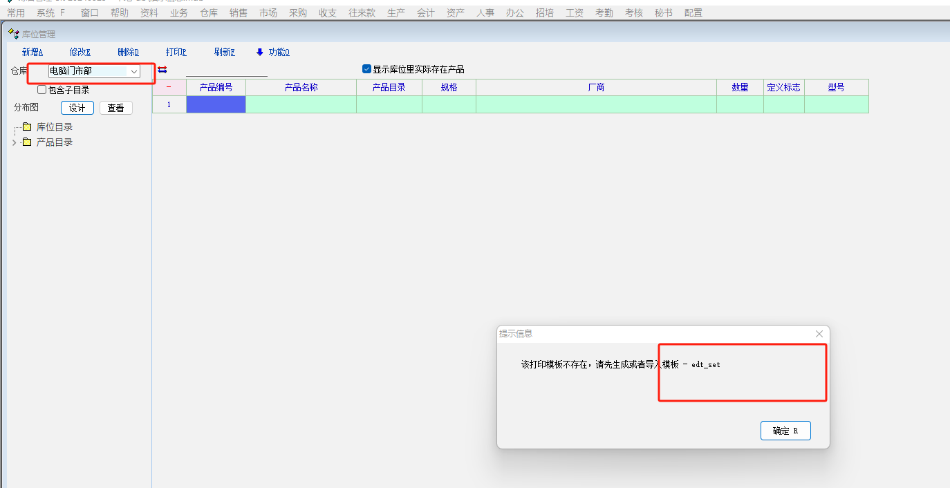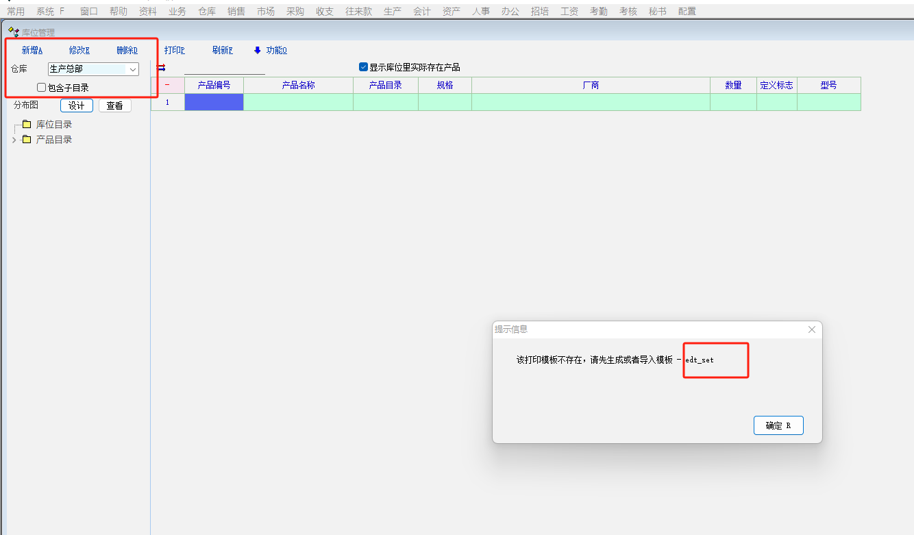 但每个仓库生成库位后,库位统一提示edt_site模版不存在