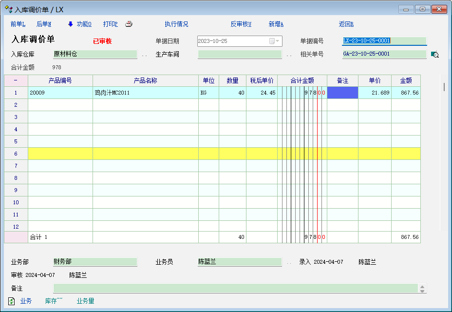 物料采购收货后,因为有其他的费用,所以在入库单后做了入库调价单,入库单上的成本单价基本一致,但是在出库单上面的出库单价就不一致了,根据计算,本月两笔采购收货,一共入库数量60,金额867.55,成本单价是14.459166,但是出库单上计算出来的出库单价是14.724667,不知道是哪里的问题,请求大神的帮助!
