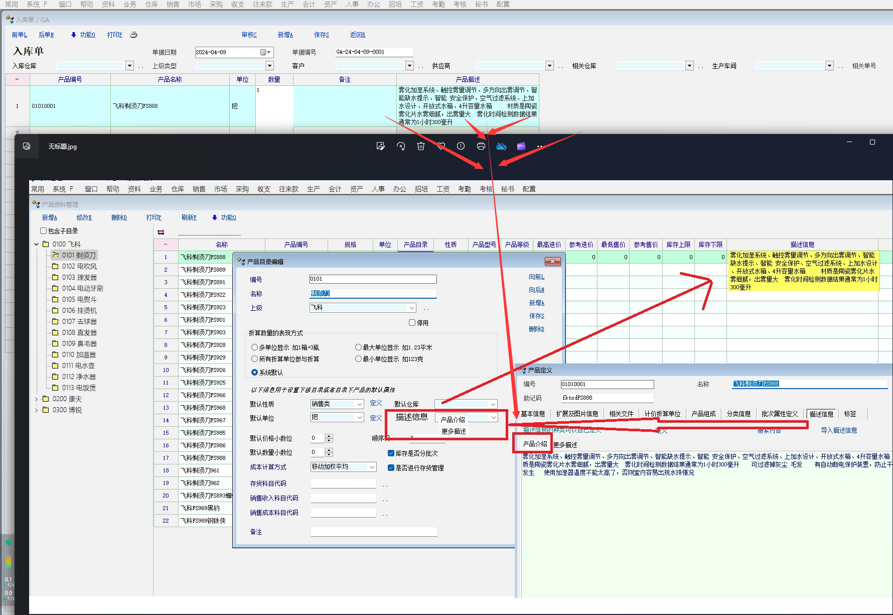 原创_建议产品目录创建时增加可选择描述信息显示选项,在产品信息及业务单据中根据选择的字_产供销