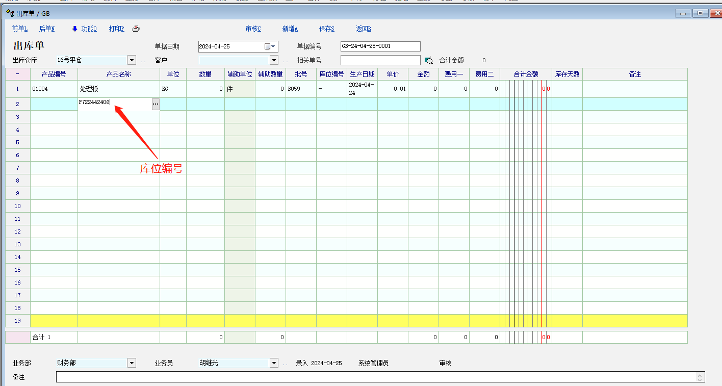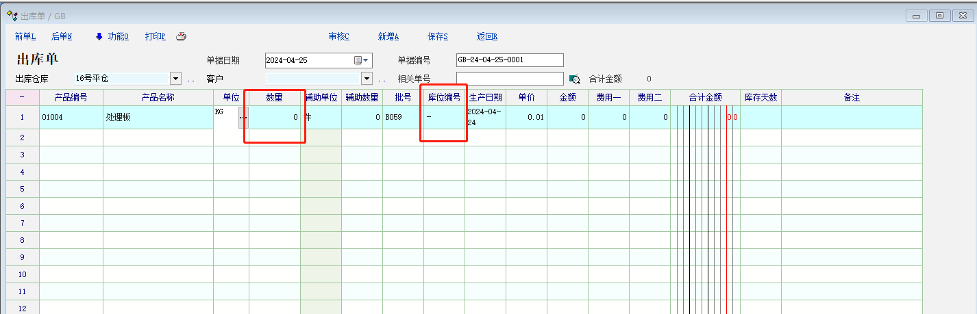 1.目前系统里支持在出入库单里根据批次检索到产品信息并带出到单据上,但带出的信息差不全面,没有带出数量,库位信息,默认能不能带出检索到该产品的库存数量呢?如下图:无数量库位图