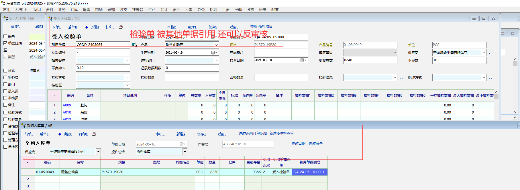 质检单据被其他单据引用后 还可以任意反审核。