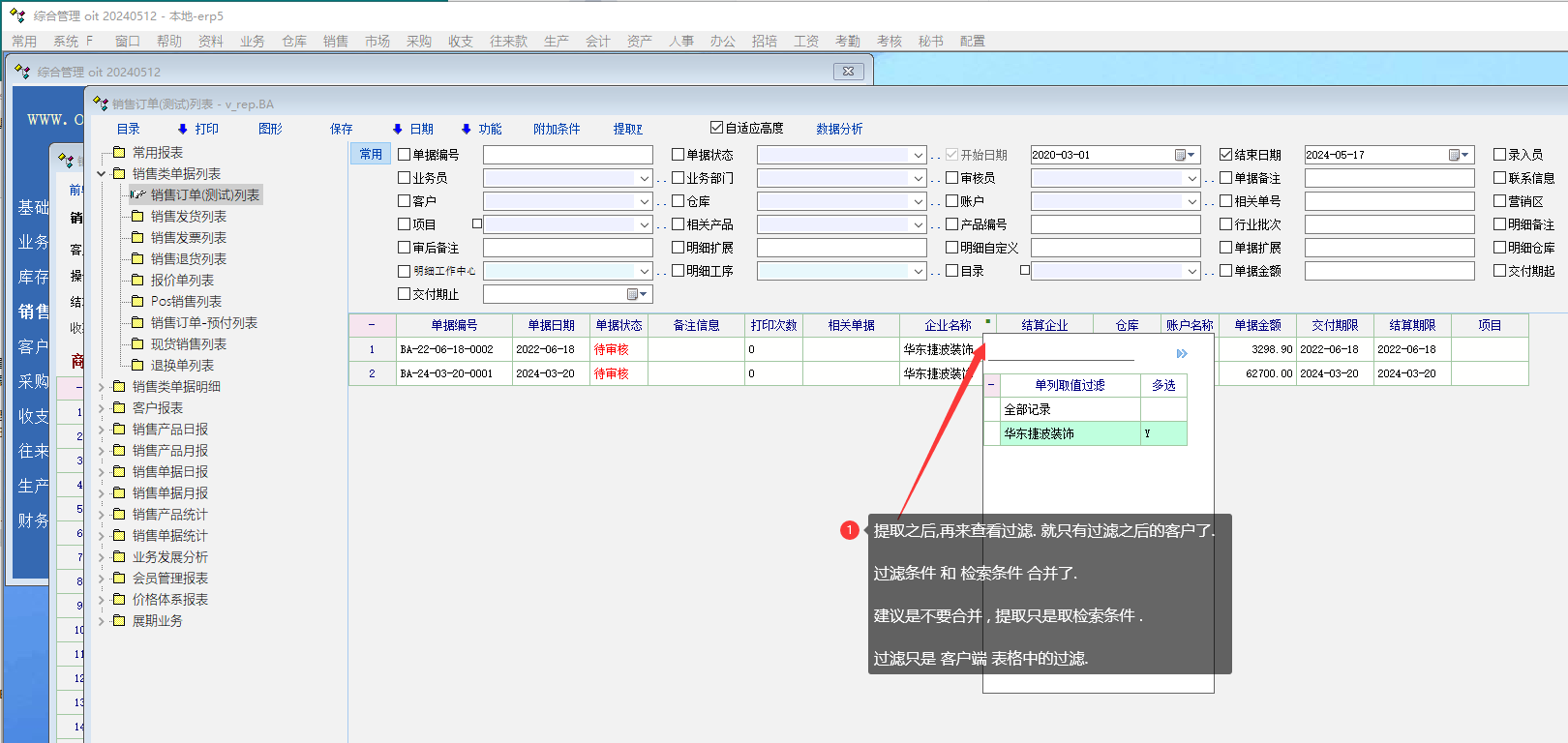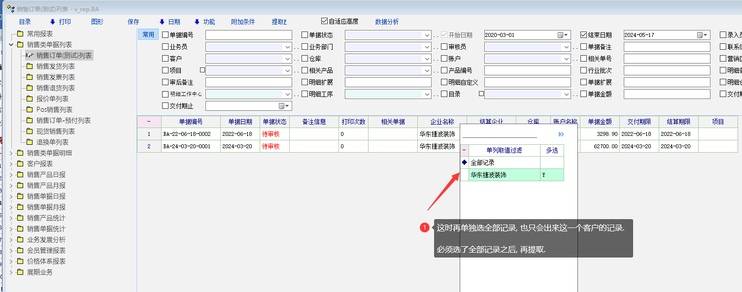 孟老师, 操作试一试... 一旦明细中有过滤, 提取之后, 全部记录中, 是不会有其他公司的. |