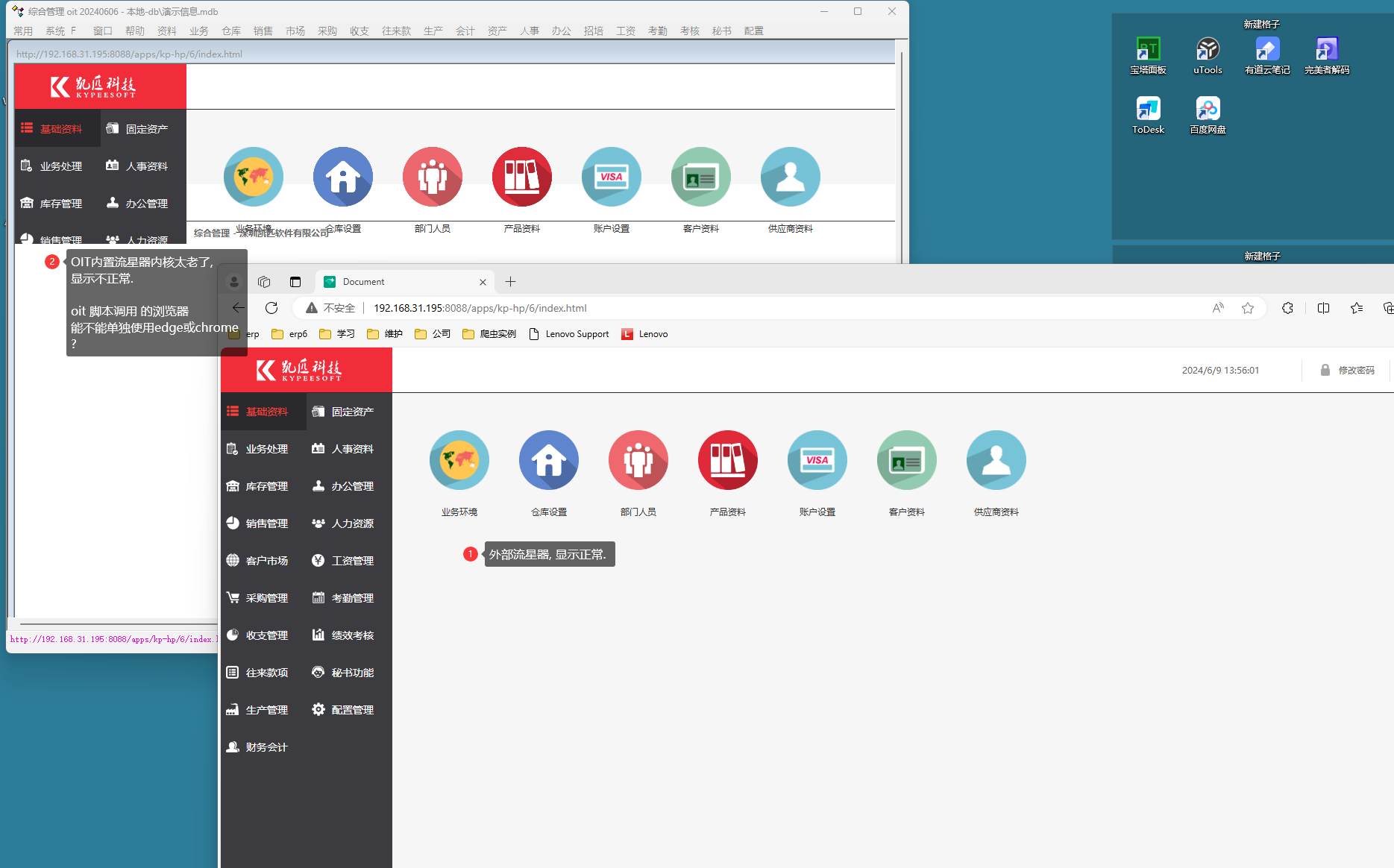 不知道是不是浏览器内核问题, oit 中使用浏览器, 经常会遇到问题. js文件的执行,css样式, 感觉是浏览器内核太老了, 不知道可以升级的么? |