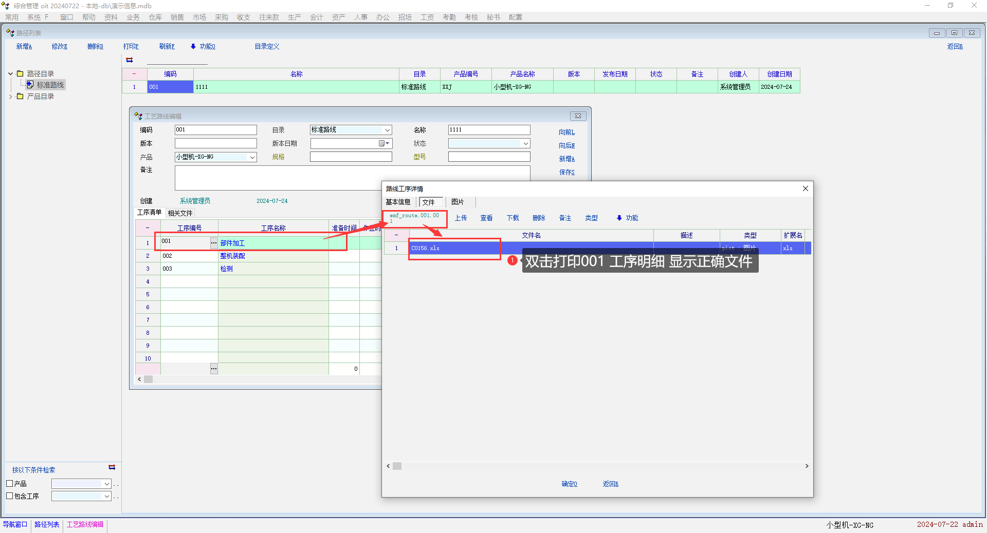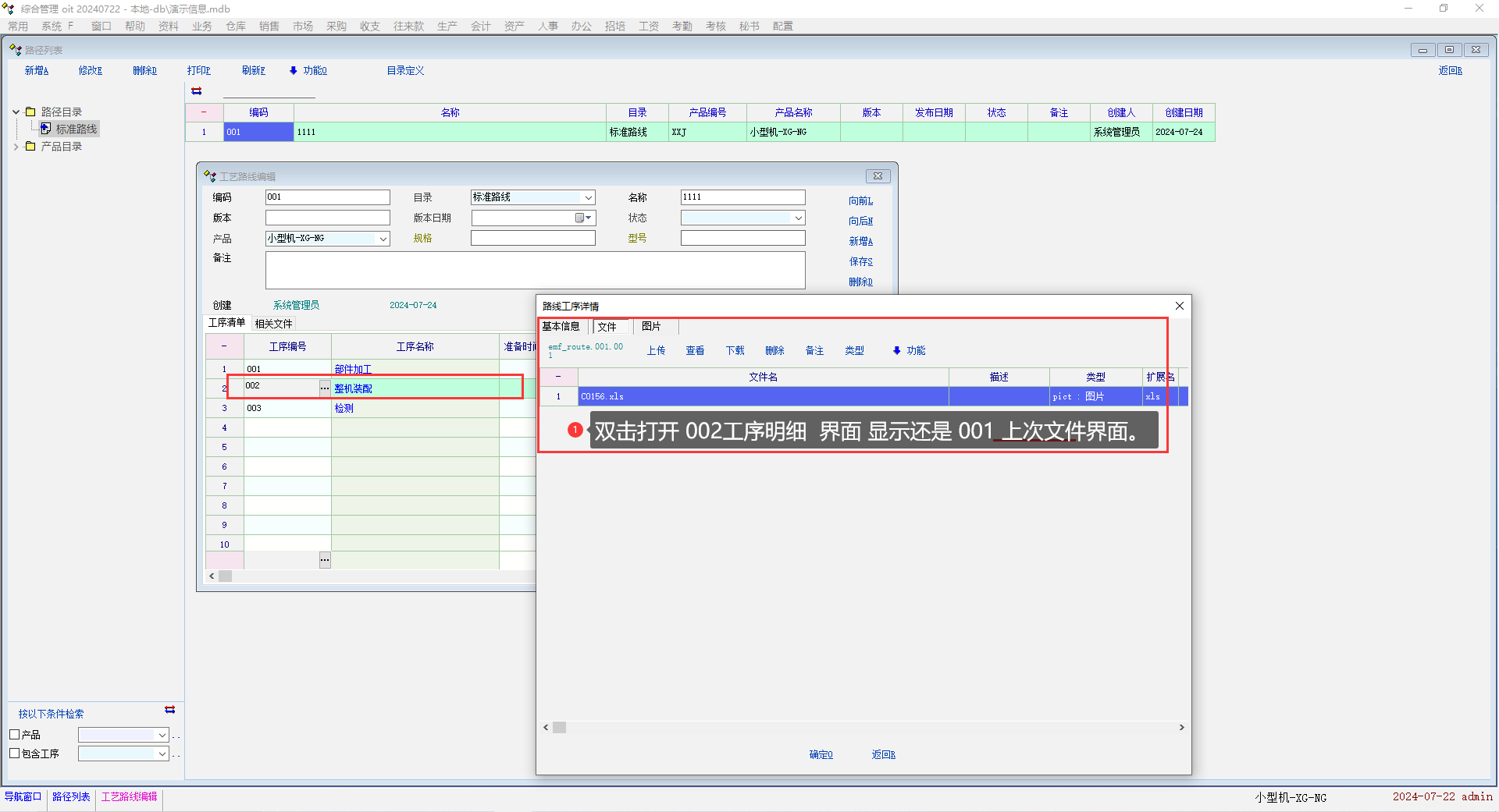 工序流程-工序明细打开  文件界面,打开另个工序明细 文件界面还是显示上个界面信息没有刷新。