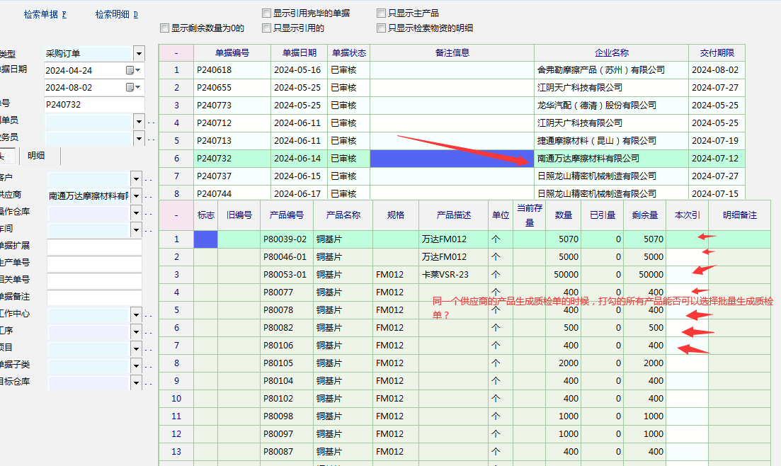 原创_质检单问题----做质检单据引用采购订单时-同一个供应商,同一张采购订单的时候选择多_产供销