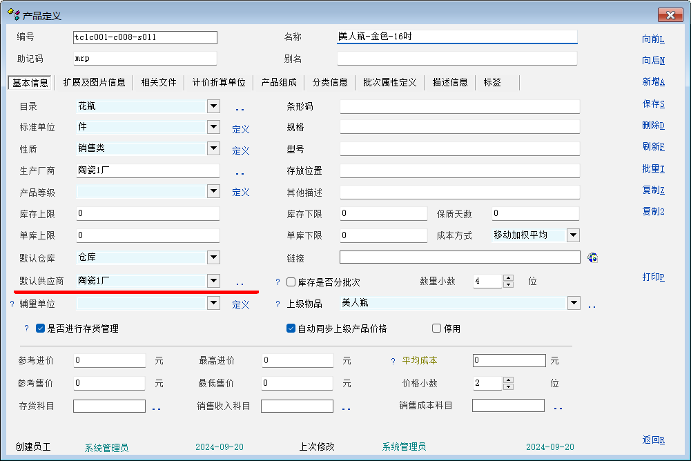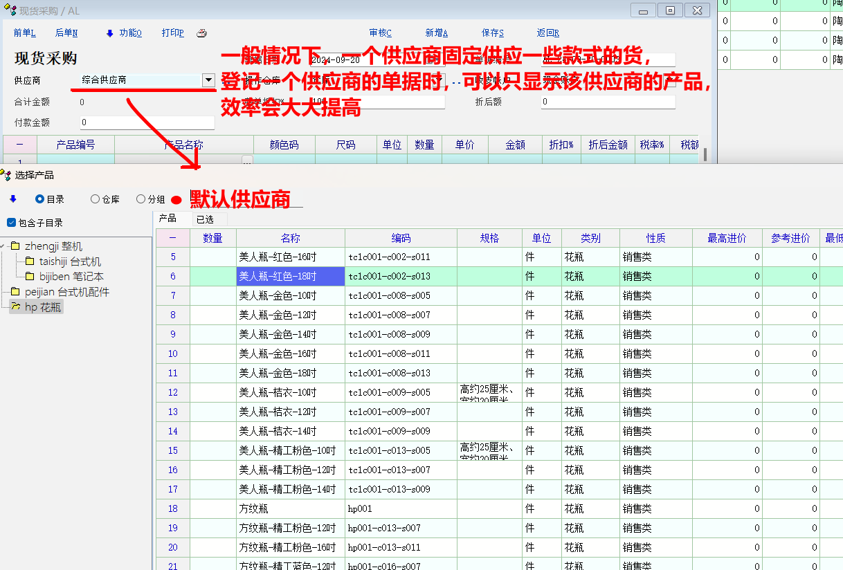 理由:很多产品都是向默认供应商进货,工作人员都记得哪些产品是向谁进的货,在增加“默认供应商”维度后,在做采购单据时,选择了供应商,可以速度选择该供应商的产品,而不用看别的供应商的产品,效率会大大提高