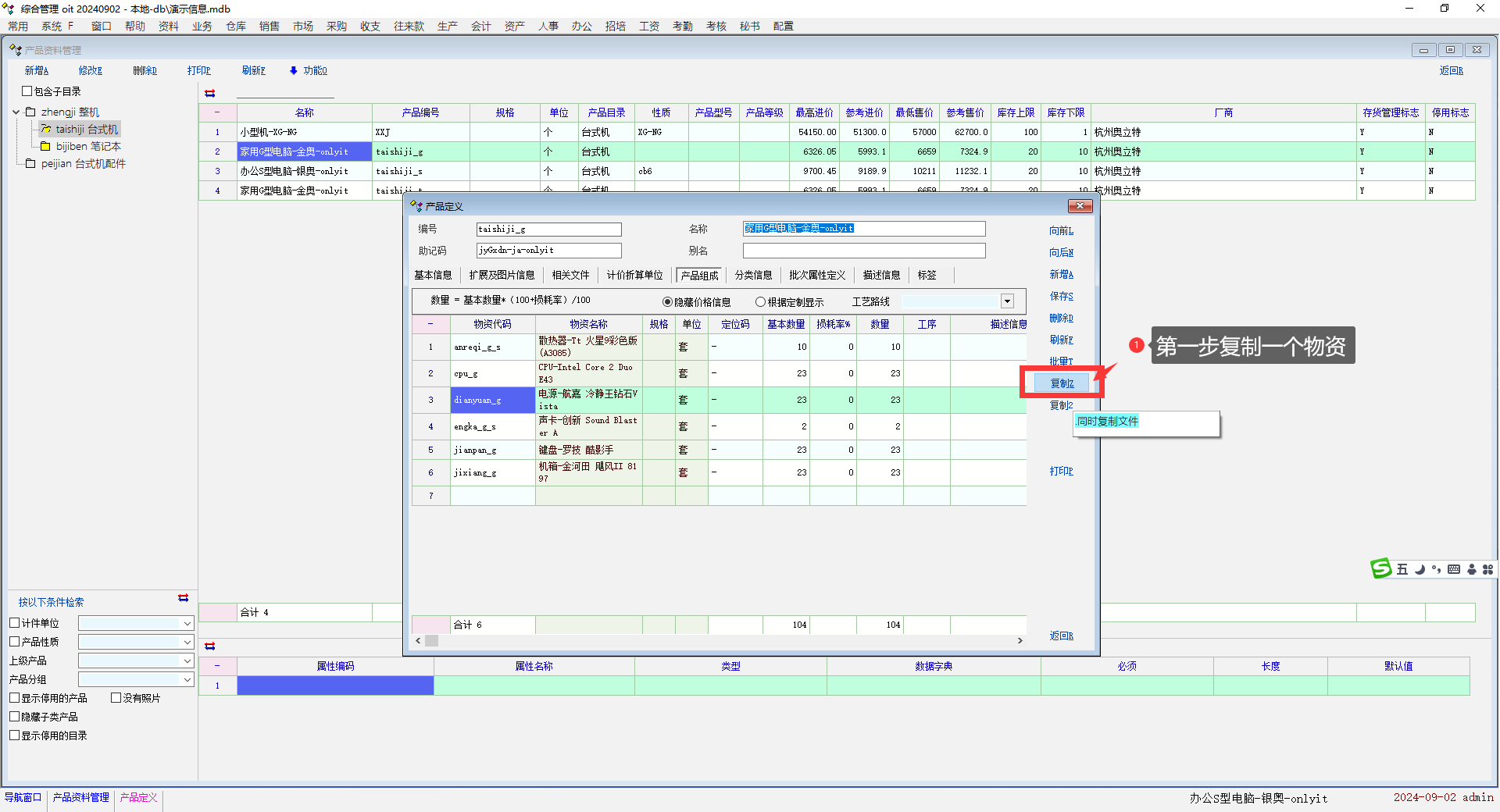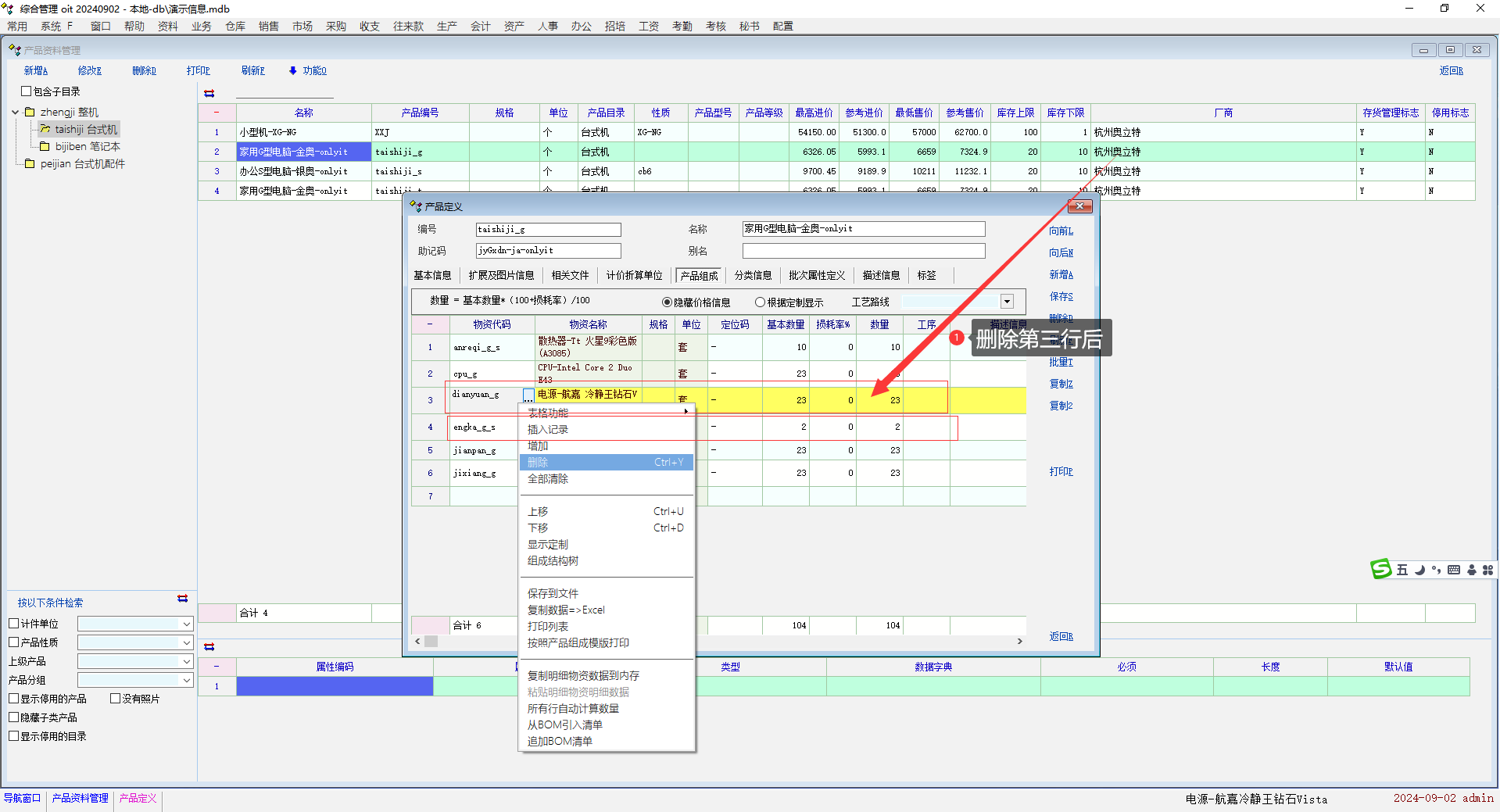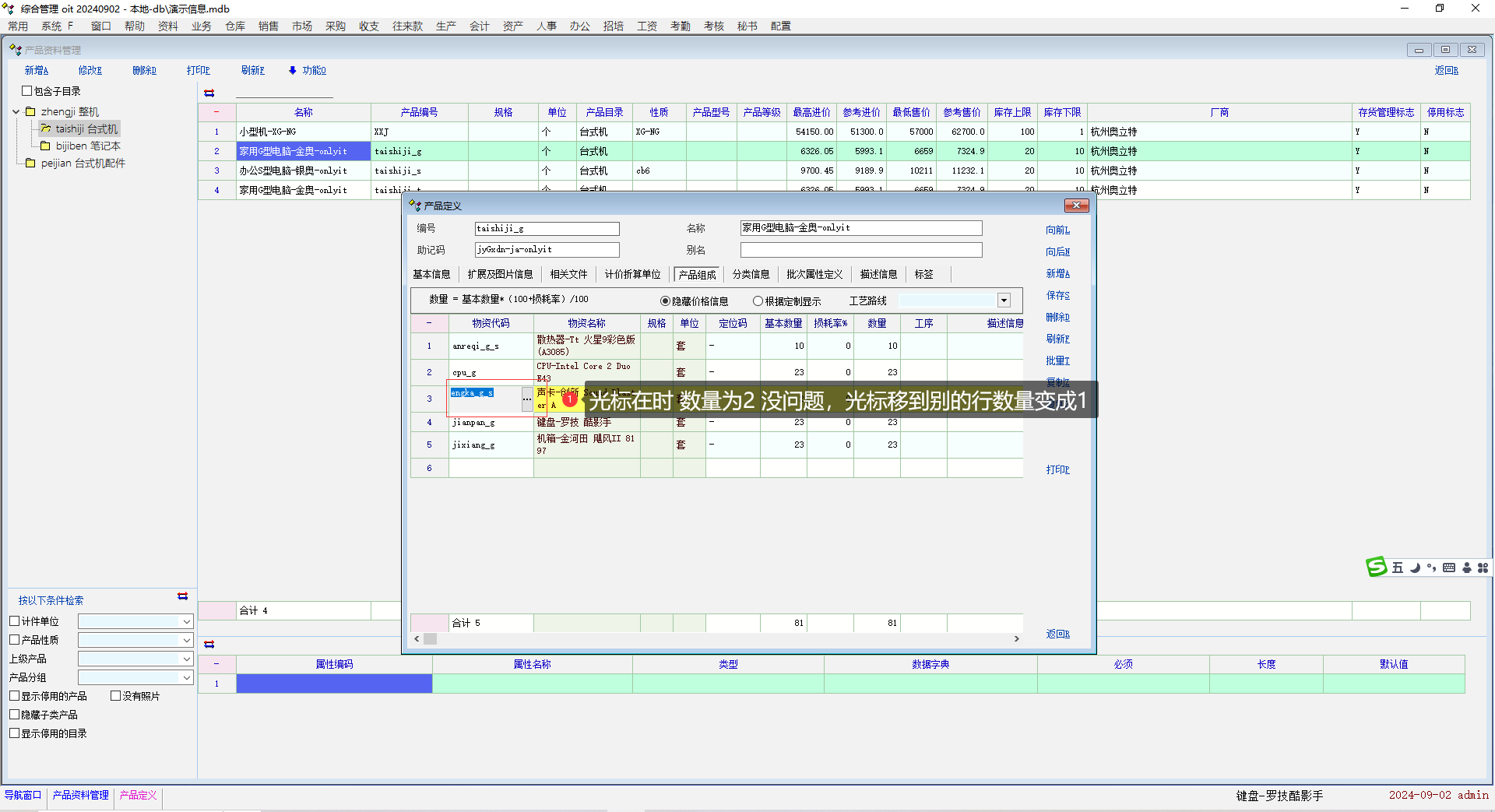 推荐_产品资料复制功能后,产品组成明细删除一条明细后后续明细数量变为1_产供销