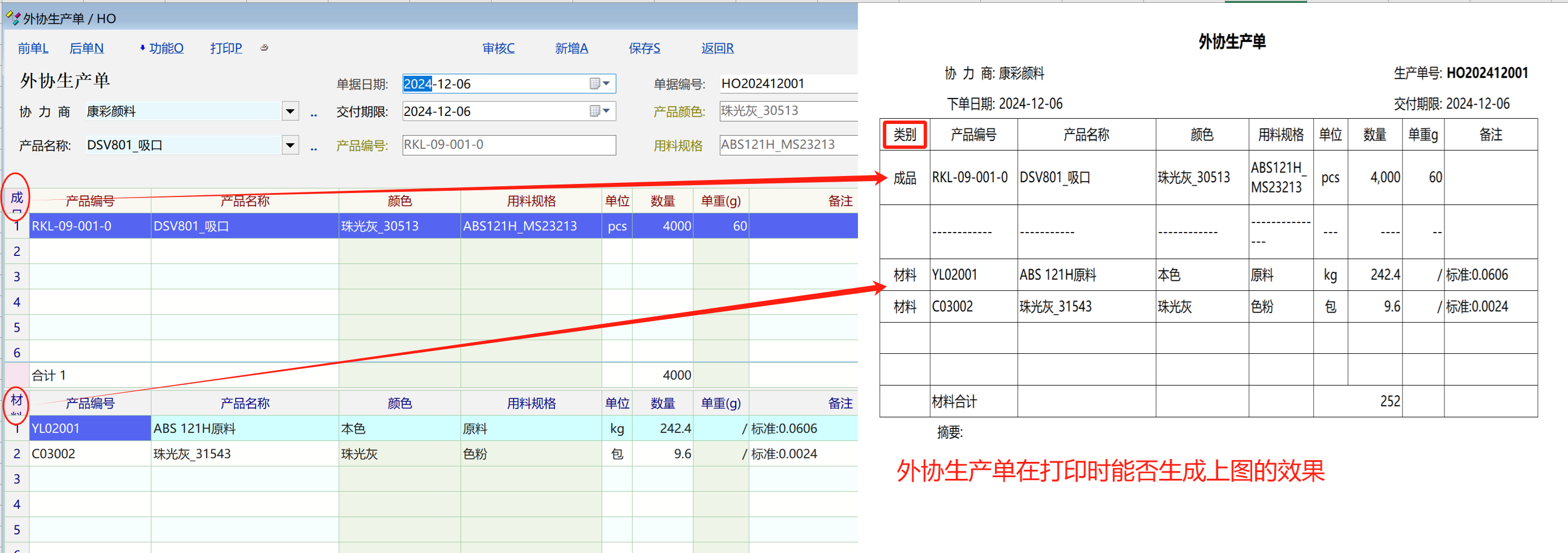 求助_外协生产单在打印时能否达到右图的效果_产供销