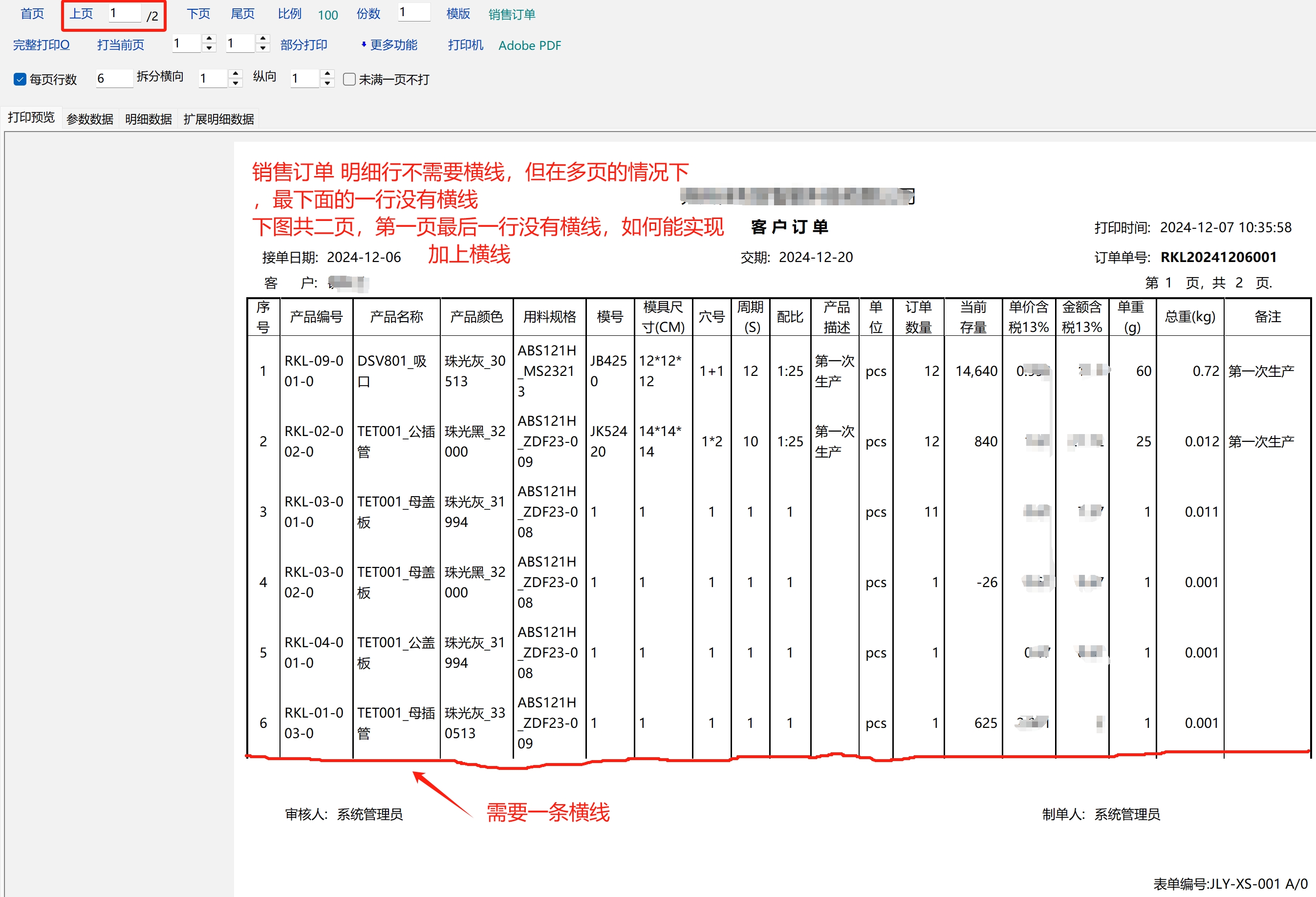 求助_销售订单在多页打印时第一页最后一行缺一根横线_产供销