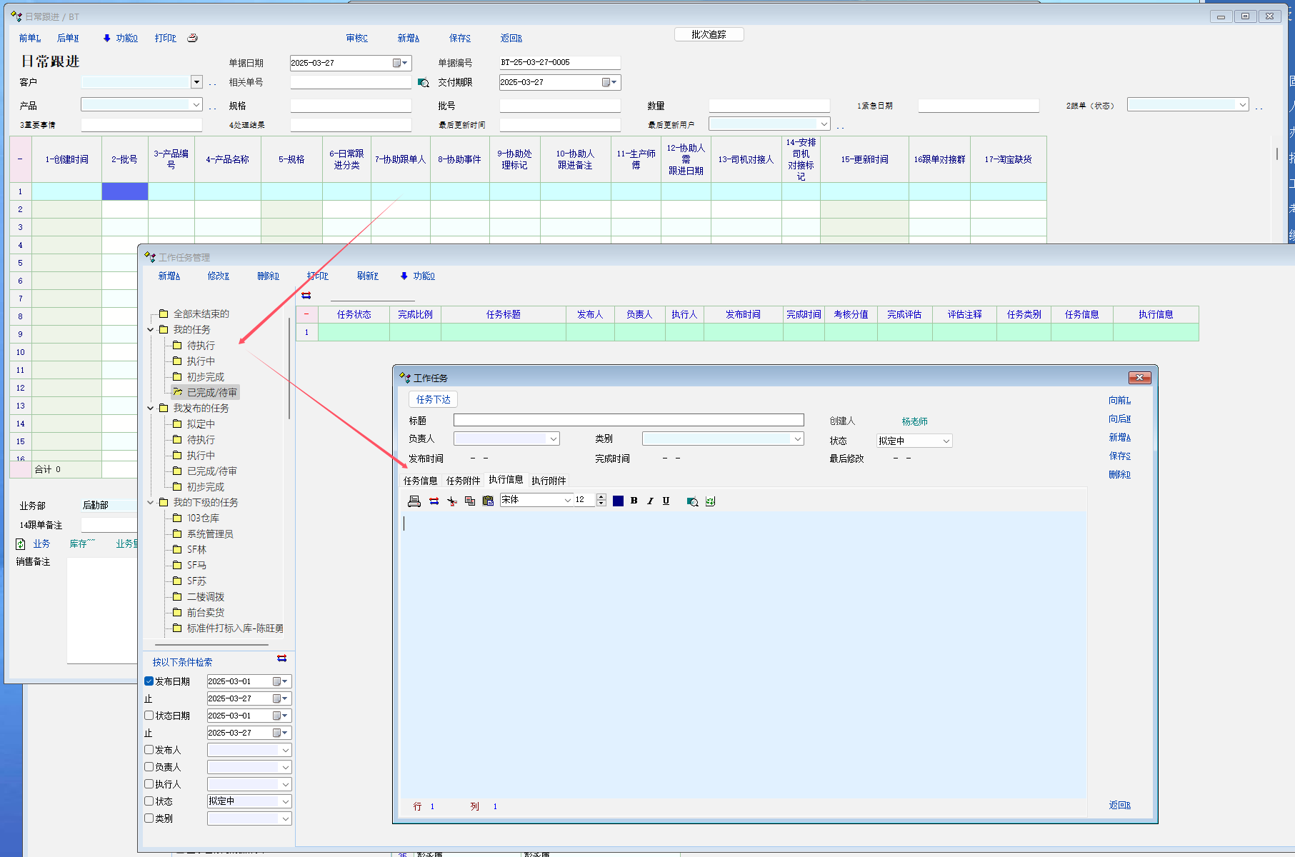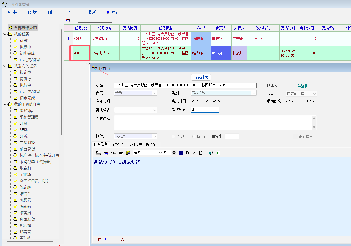 详细见图, 使用脚本在单据中, 保存时直接创建任务. 然后对应操作员在工作任务中进行对应任务的处理.