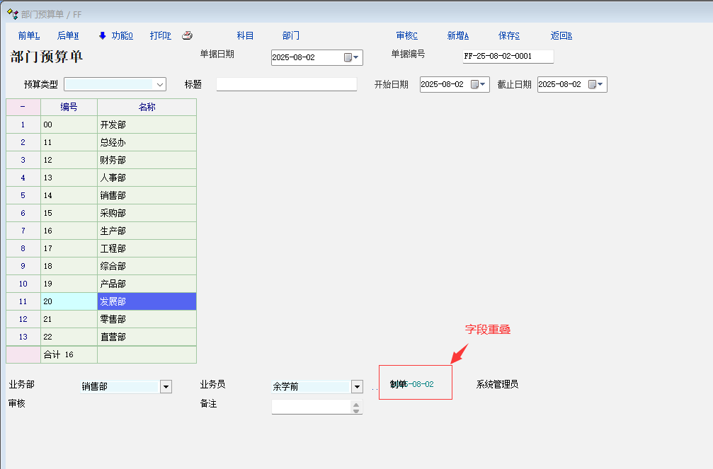 4:部门预算与项目预算页面的制单与日期重叠