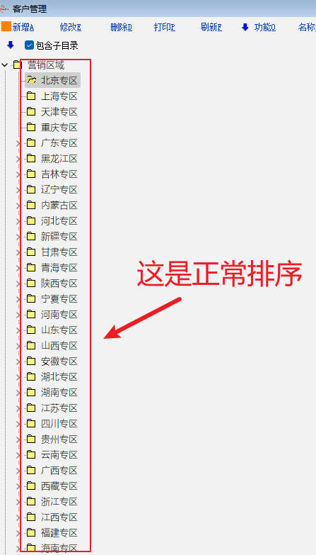 客户选择窗口 的营销区域排序异常,并没有按营销区域排序码来排序
