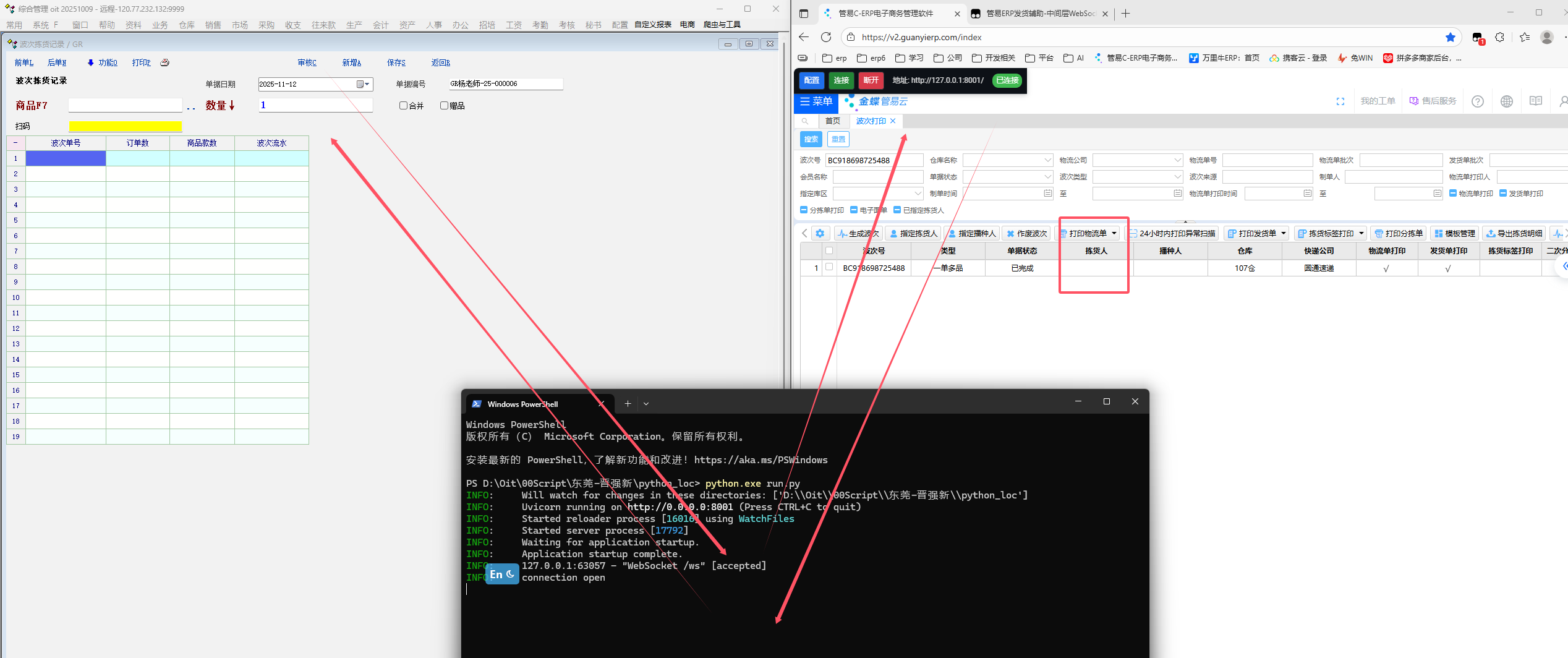 应用场景: 客户端 或 服务端, 可以连接 websocket , websocket 相比 webservice 的做点就在于, 长连接, 减少了每次连接的开销. 并且能够更及时的触发接收消息或是发送消息事件. 虽然目前脚本中可以使用定时器, 定时去检测某些数据变化. 间隔达到目的. 但是建议实现 websocket 的相关功能. 因为 其他的一些业务场景 始终会有它的优势. 附: 目前实现的: oit 和 电商平台的一些 数据. (i当电商平台没有接口时. 或者 需要及时触发某些动作时.) 在oit中扫码, 创建单据并审核. 然后电商平台直接也根据扫码查找数据, 并打印(这个是需要推送到 淘宝或京东 中的发货之类) |