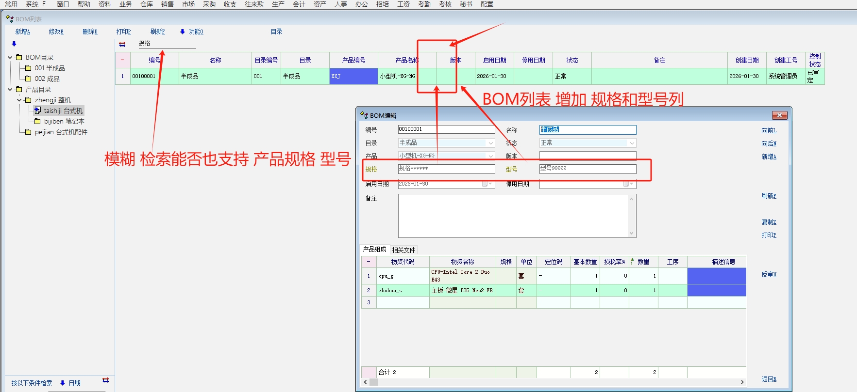 推荐_BOM列表 增加 产品规格 型号_产供销
