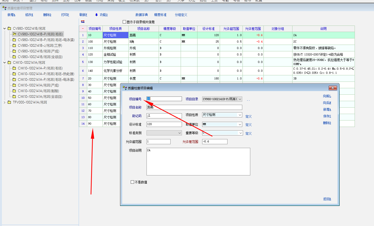 在质量检查项目编辑里,录入项目编号时,编号不能重复,不同产品的检查编号有相同的,有两个问题请求解决。