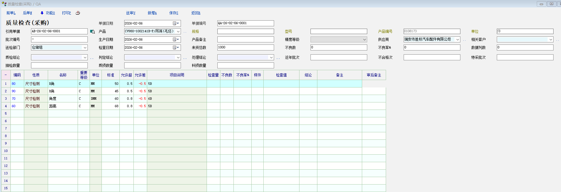 根据目前质量检查项目原有的项目栏不够,太单一了,不够详细,在使用扩展属性定义里增加八个属性栏,但这增加的属性栏有个问题,只能在检查项目管理里有效,分组定义这边不能把重要的扩展改属性栏带入过来,还有质量单据里,也没法显示出扩展后的属性明细栏,请考虑给增加项目管理里面编辑栏10个,目前的可编辑栏项目太少了,还有请把项目管理的编辑项也能带入到分组定义和质量单据里,目前这扩展属性定义扩展后的使用没什么效果了。请软件方老师给解决一下,谢谢 问题1:质量项目管理可编辑栏太少,请多增10个可编辑栏 问题2:扩展属性编辑栏无法带入关联到分组定义里 问题3:扩展属性编辑栏无法带入关联到质量单据里 |