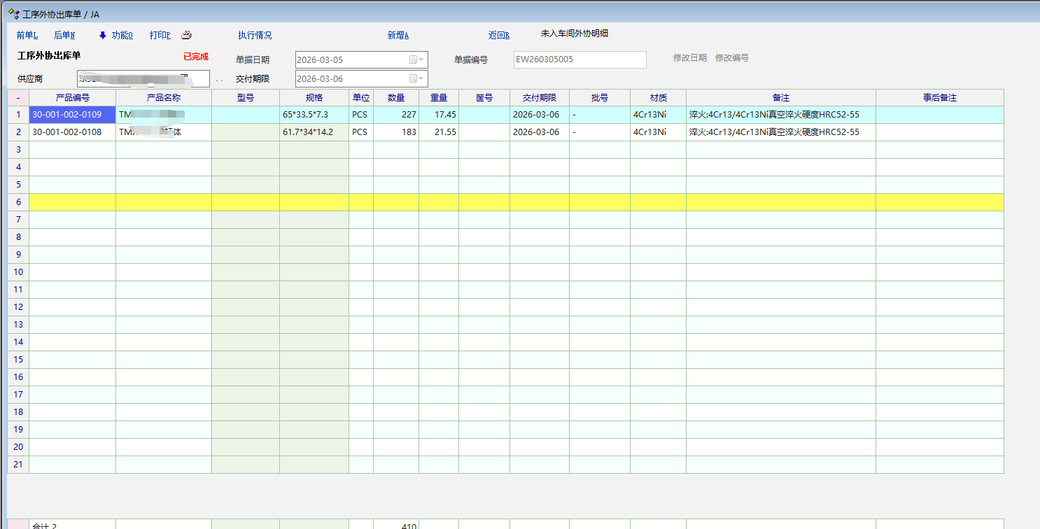 你好,请问一下这个工序外协出库单是怎么来的?