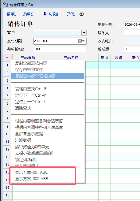 推荐_建议 物质单据左上角单元格点击时, 显示方案, 建议按名称排列_产供销